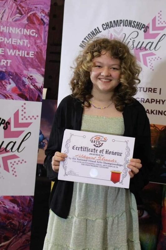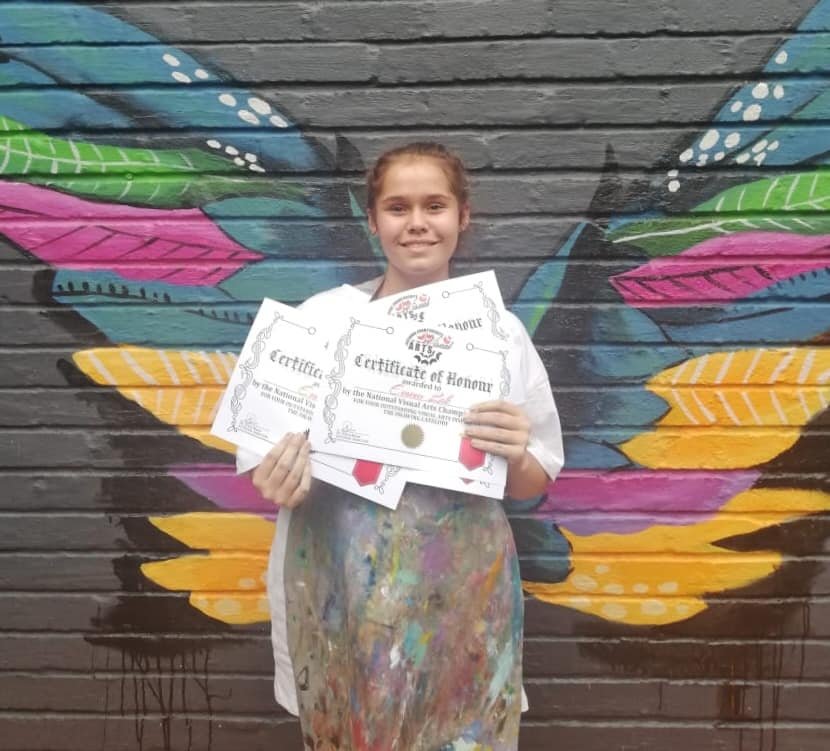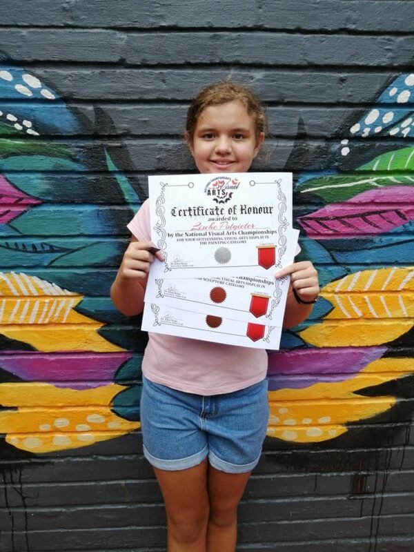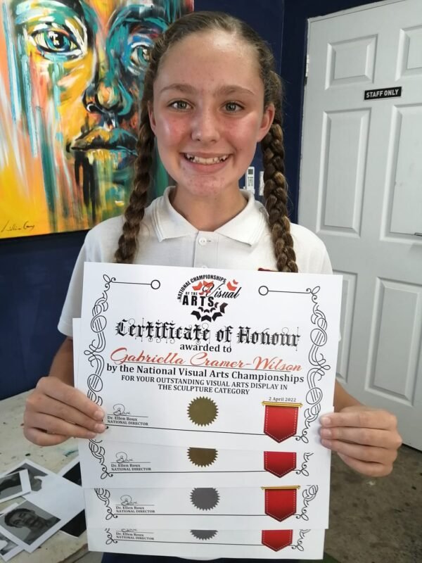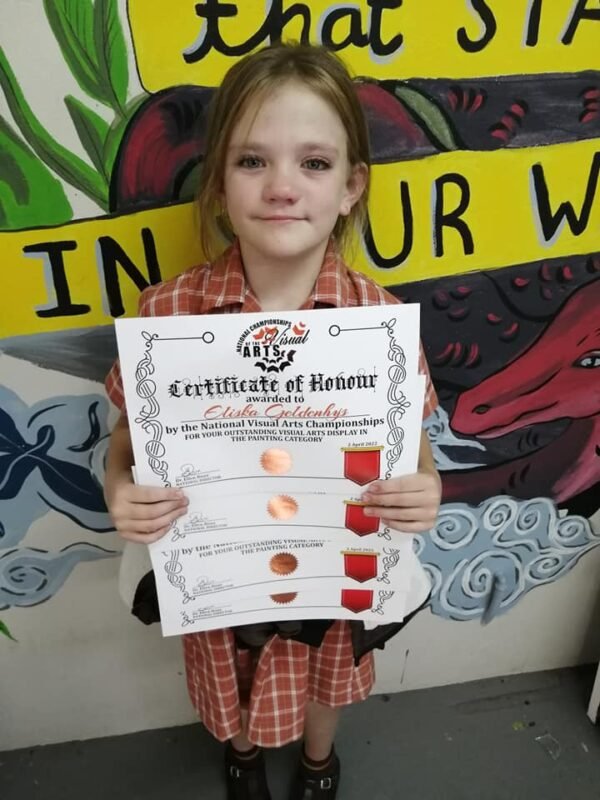 We had more great results, having won 31 gold, 17 silver, and 26 bronze in various categories and the various age groups. They received a National Championship Visual Arts badge to wear on their School Uniform as well as a certificate of honor.