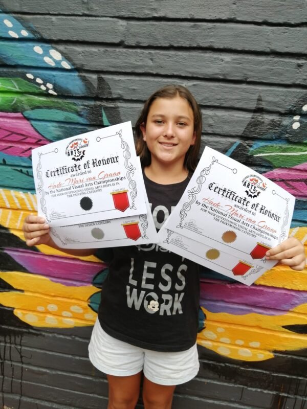 The annual SACOPA awards took place on 2 April 2022 at the OR Tambo Premier Hotel. Our school was well represented in the various categories and brought home lots of gold, silver, and bronze certificates of honor. We had multiple entries in the drawing, painting, design/mixed media, digital art, and sculpture categories. Many of our creators entered multiple artworks for multiple mediums which showcased their versatility and skill.