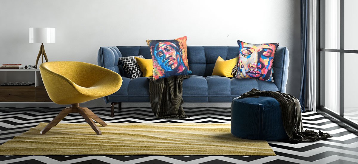 Scatter Pillows: Redefine your living space. These pillows feature Lillian’s iconic bold strokes and soulful gazes, designed to add depth, texture, and a modern edge to your home decor.
