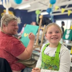 Just a sense of humour and willingness to engage. We have everything set out for you, paints, pallets, brushes, aprons, and lots of snacks so you can sit back, relax and enjoy.