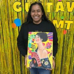 The Evening Experience: Set in a delightful and intimate atmosphere, we typically begin the evening with drinks and a chance to settle in. It’s the perfect time to relax and soak up the creative energy of the studio before we begin. Once everyone is comfortable, you will ease into the creative process at your own dedicated creative station. We provide everything you need: a sturdy easel, acrylic paints, brushes, protective aprons and your canvases.
