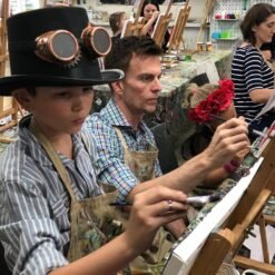 Just a sense of humour and willingness to engage. We have everything set out for you, easels, canvas, paint, aprons, and lots of delicious snacks for the kids and wine for the adults so you can sit back, relax, and enjoy.