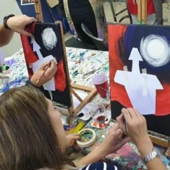 We typically start with a welcome drink, after which guests will settle down with their own art station. Lillian Gray then guides them step by step in creating unique artwork. By the end of the night, you will take their creation home. Snacks can be enjoyed before, during, and after the session.