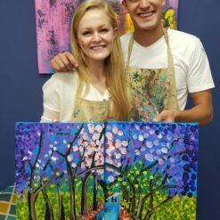 It is a lovely intimate setting. We typically start with a welcome drink, after which guests will settle down with their own easel, paints, canvas, and brushes. Our host then guides them step by step in creating a unique artwork. All participants will be given references to paint, and by the end of the night, each artist will take their creation home. Drinks can be enjoyed before, during, and after the session.
