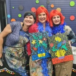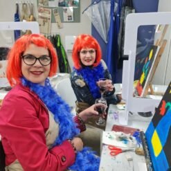 Just a sense of humour and willingness to engage. We have everything set out for you, paints, pallet, brushes, aprons, and drinks so you can sit back, relax and enjoy. You’re welcome to bring your own refreshments, including drinks, food, and snacks.